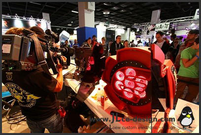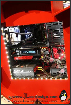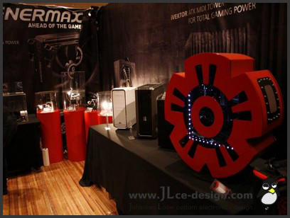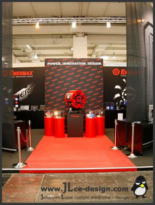 Enermax E-LogoDas Enermax E-Logo ist aus der Idee entstanden für Enermax ein spezielles Case zu bauen. Da hier nicht igendein Design infrage gekommen wäre, war es naheliegend, dass das Case direkt mit Enermax in Verbindung gebracht werden soll. Das Logo von Enermax eignet sich sehr gut für einen Computer und stellt auch einen schönen Aussteller für Messen dar. Aus diesen Gründen habe ich mich dazu entschieden das Logo des Herstellers in groß nachzubauen. Ausgestellt wurde das Gehäuse auf der Cebit im Jahr 2013 als Zentrum des Enermax Messestandes!