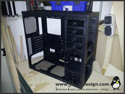 Die Ausgangslage ist ein Enermax Ostrog Gehäuse. Die Wahl fiel auf dieses Case, da es nicht nur klein und platzsparend ist, sondern auch sehr stabil gebaut, sodass man problemlos störende Einbauteile wie Festplattenkäfig etc. heraus nehmen kann und trotzdem keine Stabilität einbußen muss.