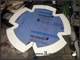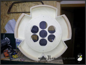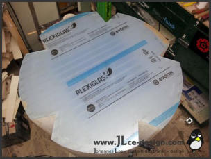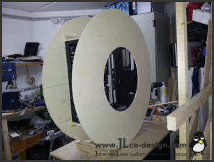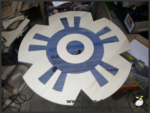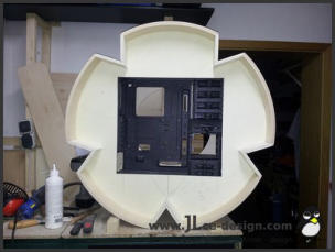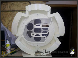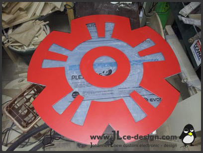 Im ersten Schritt habe ich das Grundgerüst für das spätere Logogehäuse gebaut. Dies besteht aus 2 Kreisplatten, um das Gehäuse an den alle weiteren Bauteile anmontiert wurden.