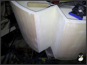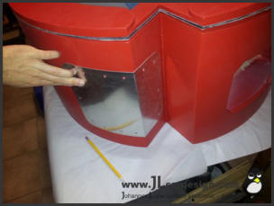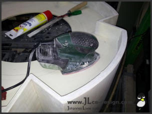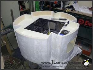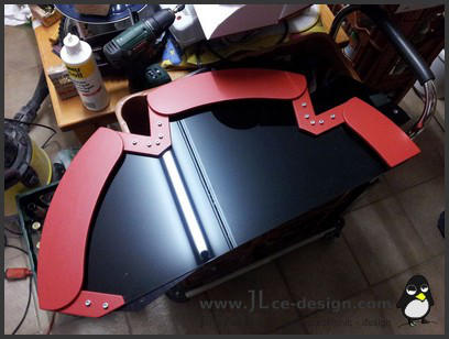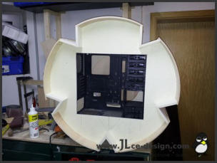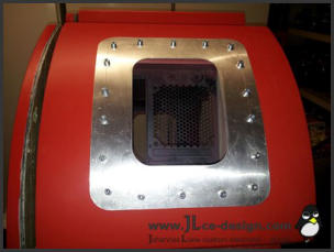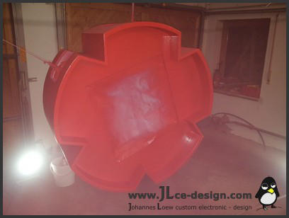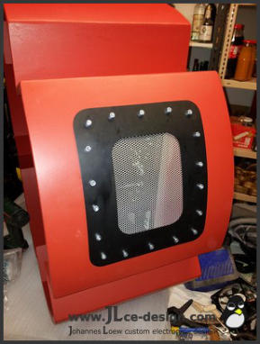 Die fertigestellte Grundstruktur wurde gespachtelt und verschliffen und anschließend in der typischen roten Farbe des Enermax Logos lackiert: