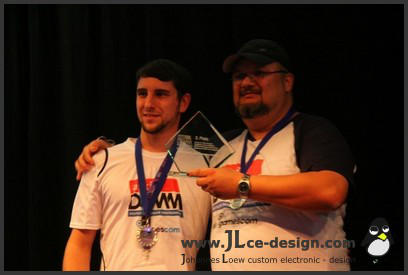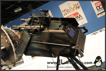 The Titan Task ForceDieser Casemod zählt ebenfalls zu den 24 Stunden Mods von Ali Abbas und mir. Grundlage dieses Casemods ist nicht nur das Case selber, sondern auch eine Schubkarre. Diese bildet das Grundgerüst des Mods. Der Casemod steht auf einem Dreibein, welches durch ein Gelenk mit dem Casemod verbunden ist. Auf diese Weise lässt sich das Case in alle Richtungen neigen. Über Bewegungssensoren erfasst dabei der Computer die Neigungslage. Der Hintergrund: In dem Casemod ist auch ein Bildschirm eingelassen, über diesem man ein Spiel spielen kann. Die Neigunssensoren erkennen die Richtung, in die das Flugzeug im Spiel fliegen soll. Man lenkt also mit der Neigung des gesamten Casemods das Flugzeug im Spiel!